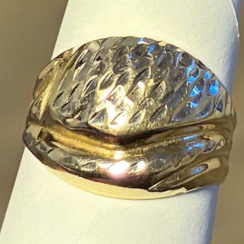 Lite brukt 14 karat gult gull ring i str. 66. 8000kr.