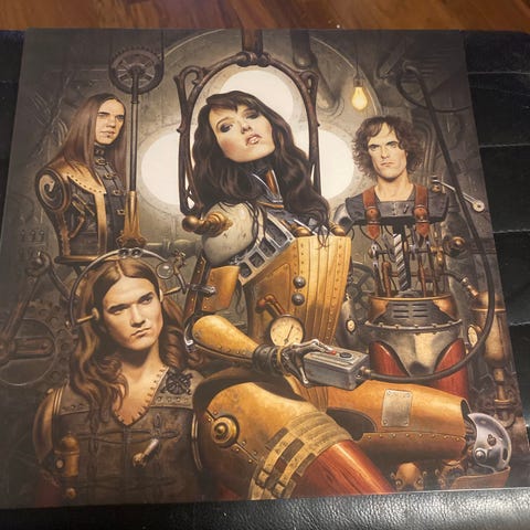 Kan ha enkelte små sår etter prislapper o.l. En og annen microbulk kan forekomme. Utbrettscoverne kan være skjeve i ryggen etter å hatt det for trangt i platehylla. Diskret navnetrekk kan forekomme. Kan ha lettere kantslitasje hvis den ikke har stått i plastcover, skjønt "ryggen" skal fortsatt være hel og lesbar uten nevneverdige skader. Spander derfor et plastcover på skiver du er litt glad i. Disse kan du få kjøpt av meg for 5,- kroner stk. 😃