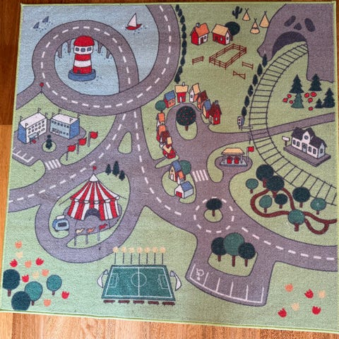 Fint bilteppe fra Ikea i behagelige og litt dusere farger. Ingen anmerkninger ifht det jeg kan se.