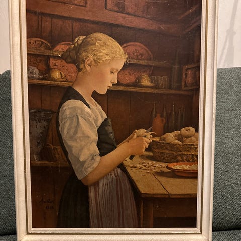 Gammelt reprint av maleriet The Little Potato Peeler