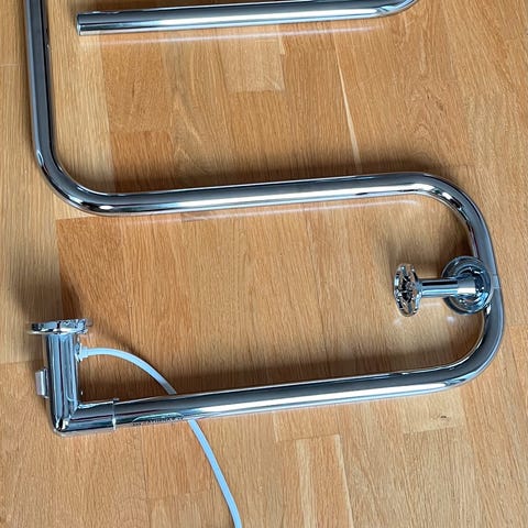 5 nye eksklusive doble baderoms-knagger i massiv flott krom utførelse. Medfølgende bakplate med 2 skruer og plugger i eske.