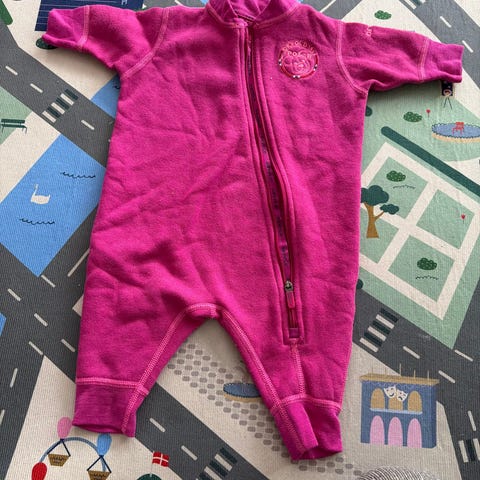 Nesten ny dress til baby fra Devold. Modellen heter Baby Polar Playsuit. Fargen heter Fuchsia. God og varm. Deilig for baby å bevege seg i. Ganske tykk ull, men likevel lett. 70% merinoull 30%polyester. Stor i størrelsen. Kostet rundt 700,- ny. Kun brukt noen få ganger. Selger også lue som passer til, se mine andre annonser