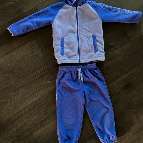 Sett i fleece fra Skogstad selges. Litt tykkere fleece. Litt flekker på ermene etter maling, se bilde. Ellers er det lite brukt.