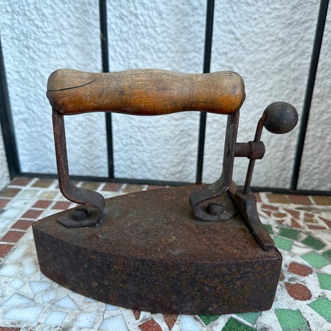 Rosenfors strykejern til vedovn eller pynt. 17 cm lang og 16 cm høy.