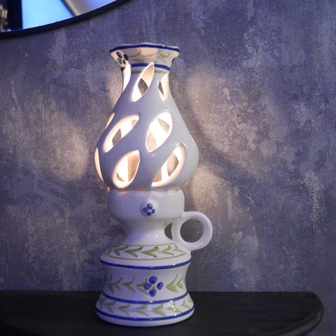 Middelhavs lykt / lanterne i keramikk, hånd laget Hele 35 cm høy.