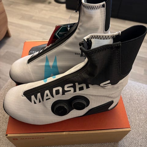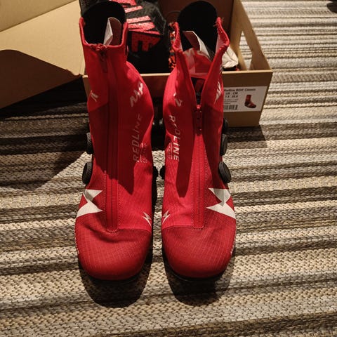 Meget pent brukte klassisk sko med det nye boa-systemet. Brukt i to konkurranser og fire treninger før vi måtte innse at de er litt for store.