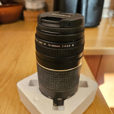Selger denne pent brukte kameralinsen fra Canon: https://store.canon.no/canon-ef-75-300mm-f-4-5-6-iii-lens/6473A015/?&&&&wbraid=CjkKCQjwkeqkBhC5ARIoAN8XXouZGNQoa6pS7LWBgOSmlSY5UVoveeWgRB4WX0ElbuMFqJEWeRoCo7M&wbraid=CjkKCQjwkeqkBhC5ARIoAN8XXouZGNQoa6pS7LWBgOSmlSY5UVoveeWgRB4WX0ElbuMFqJEWeRoCo7M