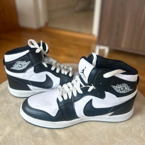 Jeg selger mine Jordan 1 Highs som jeg fikk i 2023 siden jeg ikke lenger bruker dem. De har stått i skapet mitt i rundt 7 måneder uten bruk. De er 44 EU.