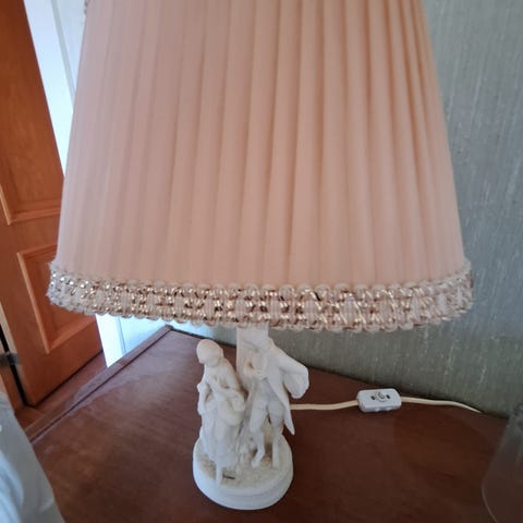 antikk lampe med billedfigur i stein fra 60 tallet
