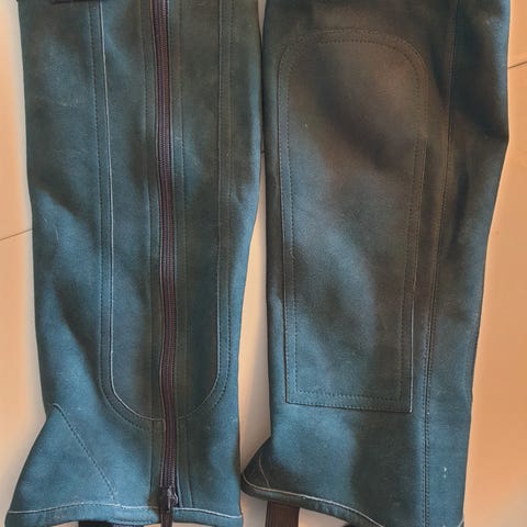 Pent brukte leggchaps til barn i størrelse Small junior selges.