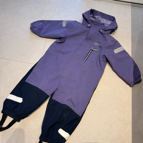 Dress fra Reflex i str 86 (litt stor i størrelsen). Passer til bruk vår og høst. Avtagbar hette, strikk under føtter, lommer med glidelås. Pent brukt uten flekker eller skader.