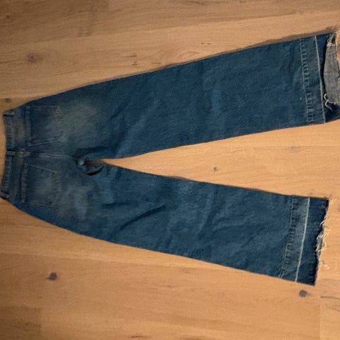 Selger mine stilige jeans med høyt liv og vide ben billig.