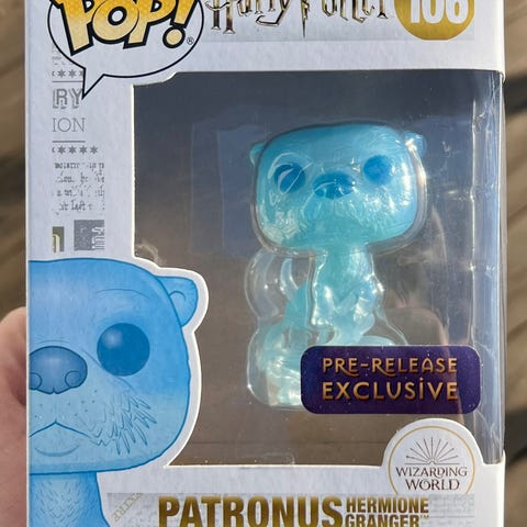 Hermine Granger sin Patronus funko pop. Aldri tatt ut av esken. Selges da den bare samler støv.