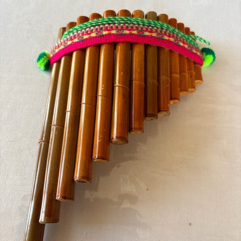 Finne panfløyte laget av bambus. Lende 17 cm bredde 13 cm. Pris er pr stk. 199 kr.