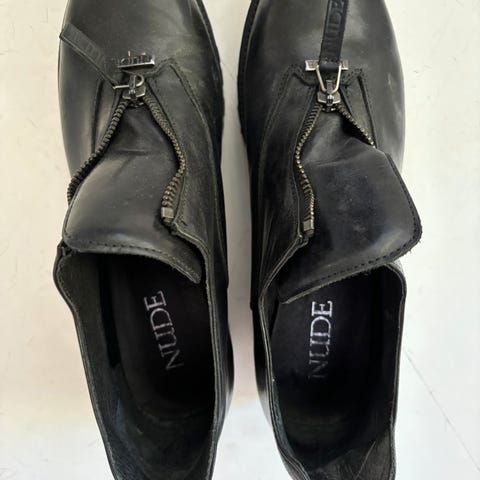 Veldig fine overgangssko i myk skinn til vår /høst, som dessverre passer ikke meg. Ble brukt max 2 ganger. Str 39, svart , men kontrast farge hvitt og sort i sålen.