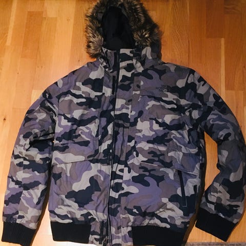 Lite brukt North Face vinterjakke selges rimelig. Dette fordi vi har reparert den foran. Den er svart og størrelse s i herrestørrelse, men den er litt stor i størrelsen