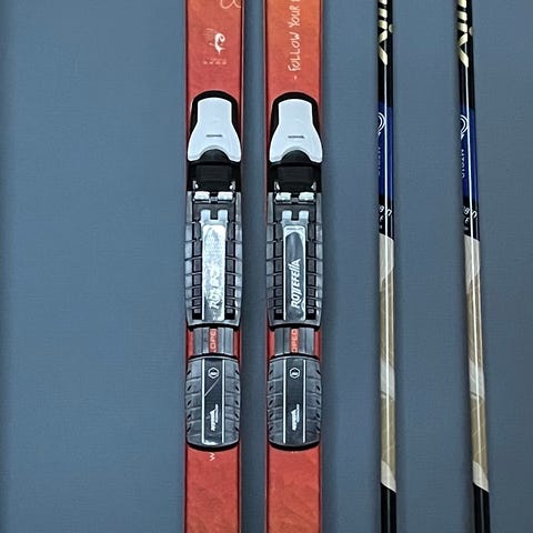 Jeg selger et par svært lite brukte Åsnes Vikafjell fjellski pga sykdom. Bredden på skiene er perfekt for å kunne brukes både i preparerte skiløyper og utenfor løypa.