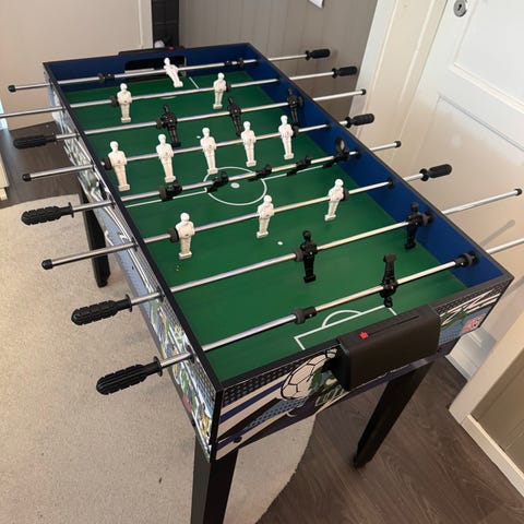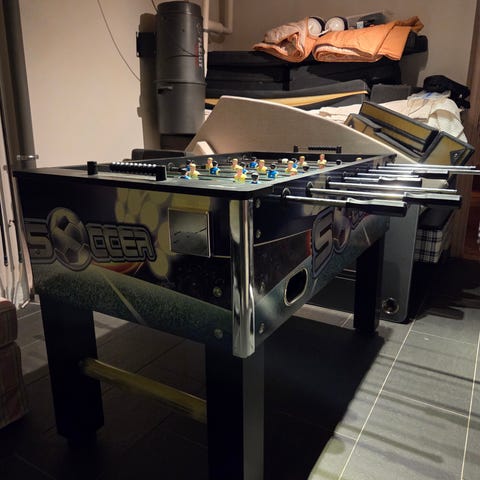 Et klassisk fotballbord fra Smoby. Snurr spillerne, skår mål og hold styr på stillingen! Et stort og stabilt spillebord med plass til flere spillere. To baller av kork inngår.