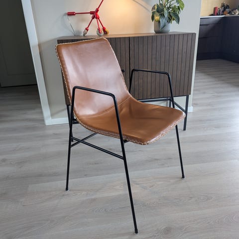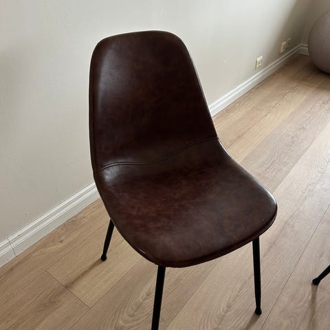 6 fantastisk gode spisestue /kjøkken stoler vurderes solgt. PU materiale i brunt , bein i svartlakkert metall. Som ny. Selges samlet kr 8000- Må hentes.