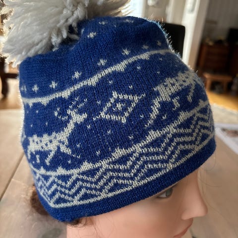 Ny hjemmestrikket lue med brodert flagg i norske farger