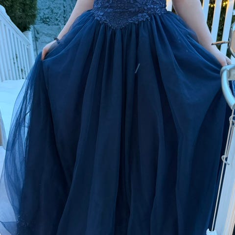 Den er i størrelse S men er justerbar i ryggen så den passer xs-m også. Hun som brukt den er ca 174 cm høy og den treffer akkurat bakken uten heler.✨