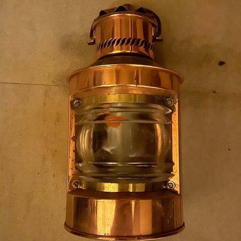 Nautisk lampe i messing og trefot. For vegg og tak. Produsert i Italia. Detaljer i bildene.