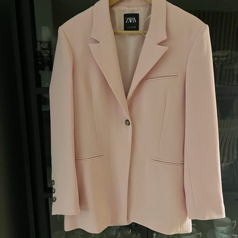 Ubrukte Zara blazer i babyrosa selges. Har kun prøvde på. Selges pga den er for stort for meg. Kan sendes eller møtes i Oslo sentrum.