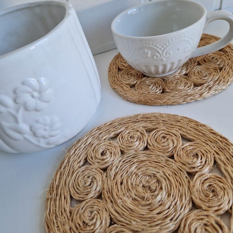 To måleskjeer i porselen som står støtt på underlaget.