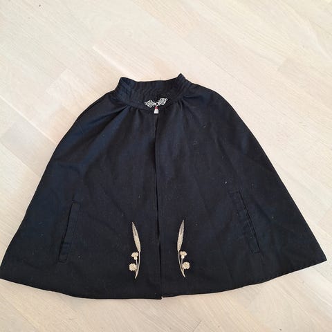 Bolero, kyse og forkle har pyntekant i engelsk broderi.