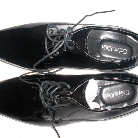 Blå sko i canvaslignende stoff fra Calvin Klein. Kjøpt i USA i 2016, men ble bare brukt ca 5 ganger. De har ikke bruksslitasje, men de har ligget lagret i en eske og fått en liten «bøy» på framsiden, som vist på bilde, der tekstilet er ørlite lysere i fargen. Selges derfor billig.