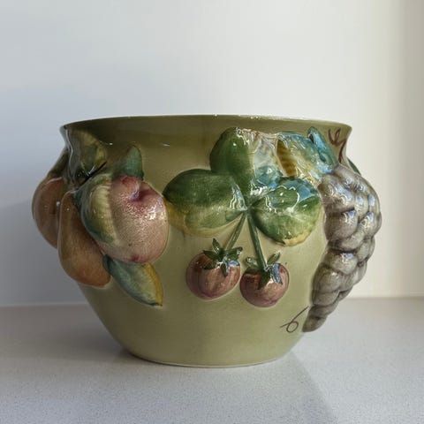 Hel og fin blomsterpotte med svake bruksmerker i bunn.