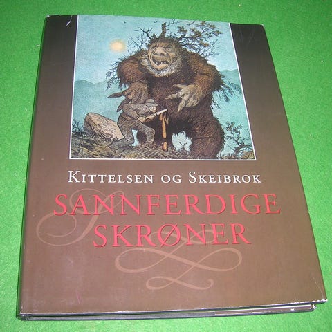 Bok omslag. Sannferdige skrøner. Kittelsen og Skreibrok.