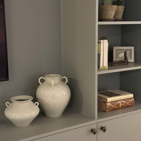 Flotte sjøgrønne håndlagde keramikk krukker fra Portugal.