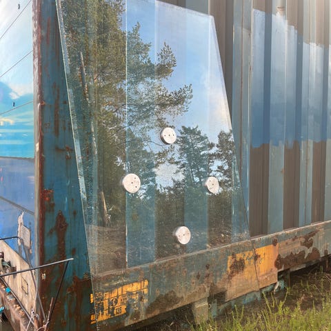 Selger en bordplate I 10mm herdet glass med "skråskjærte" kanter. Perfekt for DIY prosjekter og passende størrelse som stuebord.