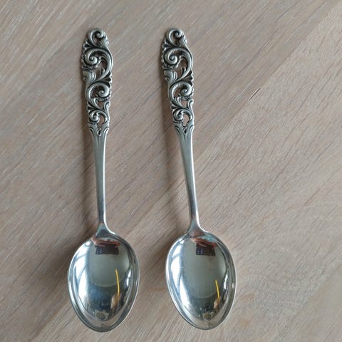 Nostalgi! Sukkerskje i pent brukt stand. Merket med mesterstempel «J» og 830S. Laget av Sylsmidja, Voss. Selges for 450 + porto (69 Postnord m/sporing). Kan ev. hentes i Bergen el. Haugesund.