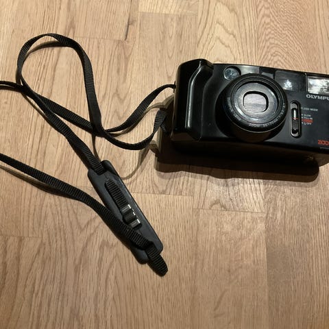 Olympus Pen EE-2 35mm filmkamera med innebygd blits. Kameraet har en Olympus 35mm linse og er designet for analog fotografering med 35mm film.
