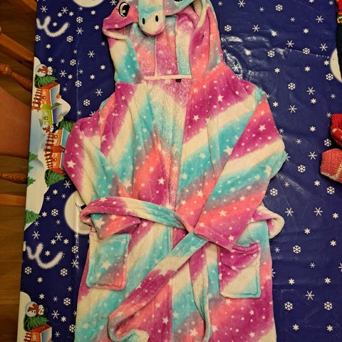 Blå morgenkåpe med snor str 5-7 år