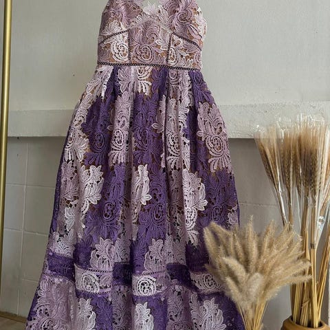 This dress is perfect for romantic occasion! The black color with floral embroidered decorated is beautiful and the nude color of lining(fôr) is perfect for skin tone. The bodice-style fit like a glove and fall fairy skirt into the maxi length.