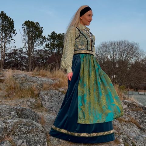 Nydelig festdrakt fra Valland med veske selges til kr 5800,-