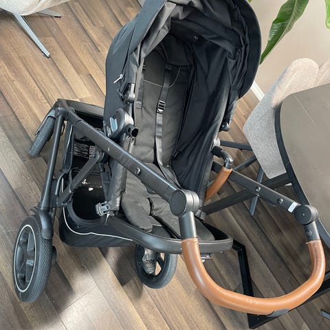 Noen bruksmerker på nedre del av ramme (se bilder). Følger med regntrekk til både liggedel og sittedel