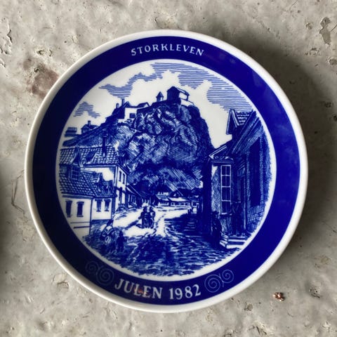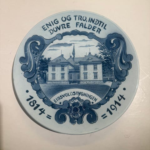 Flott eldre porselensplatte med dekoren "Handels og søfarts museet paa Kronborg."Det er laget i 1918. Diameter ca 20, 5cm. Ingen skader.
