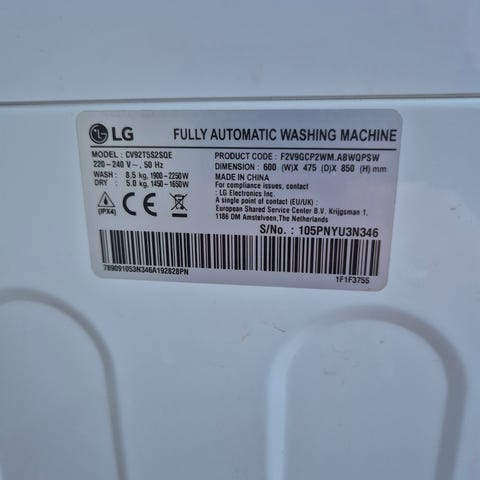 Kombinert vaskemaskin fra LG med 8 kilos vaskekapasitet og 6 kg kilo tørkekapasitet.