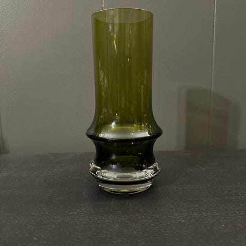 Selger vase / lysestake Telemark 17 cm fra Hadeland Glassverk. Har noen skraper i selve glasset, selges derfor billigere, men er ikke så lett å se i vanlig lys. Se bilde:) Nydelig grønnfarge.