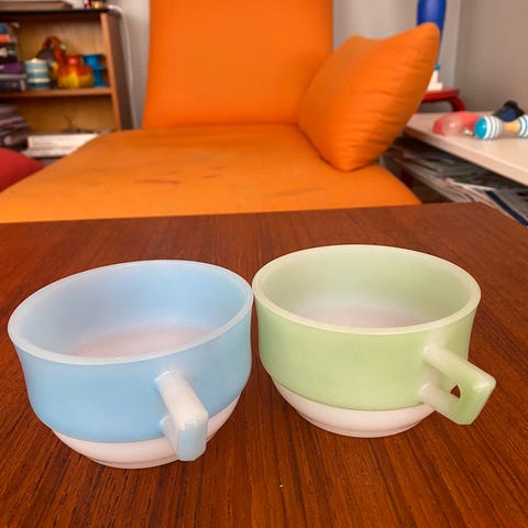 Tre enslige kopper med nydelig dekor. Ingen krakkelering eller nagg.