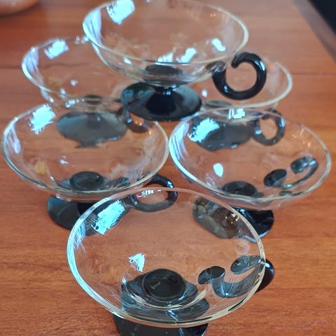 3. Ukjent fabrikat. Litt slitt gullkant øverst. Mål: h 6,5 cm, diameter 7 cm. Kr 100.