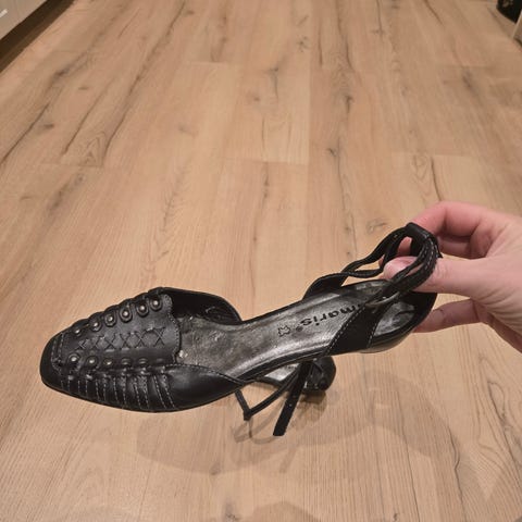 Sandaler med høy hæl (ca 7 cm) i fargen «light gold». Kjøpte skoene til en kjole som jeg endte opp med å selge, så de har ligget i eska siden jeg kjøpte dem i juni i fjor.
