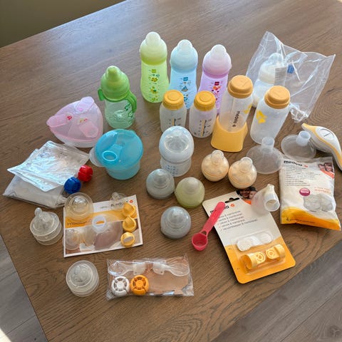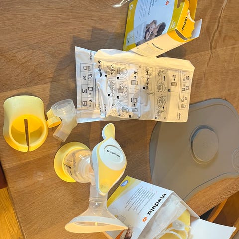 Alt er kjøpt nytt av meg, bortsett fra Medela håndpumpen (som også følger med, men er ikke med på bildet ennå – jeg tar bilde og legger det ut senere).