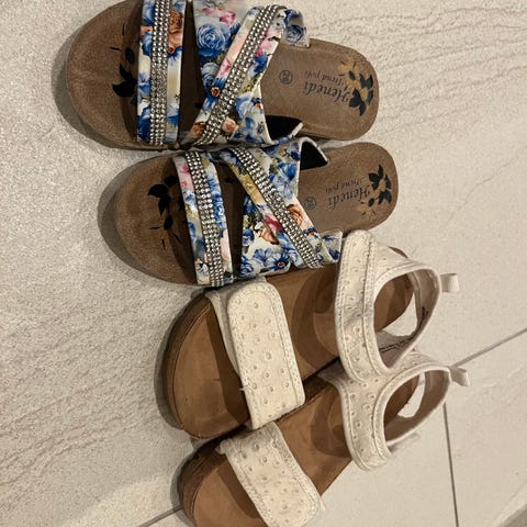 Brukt som pensandaler, men ble favoritter og derfor brukt mer enn det. Godt brukt, men mye bruk igjen.