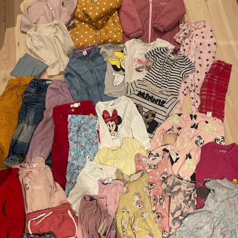 Klespakke jente 68. Mange av klærne ser helt ubrukte ut. Masse fine klær for en rimelig penge :)