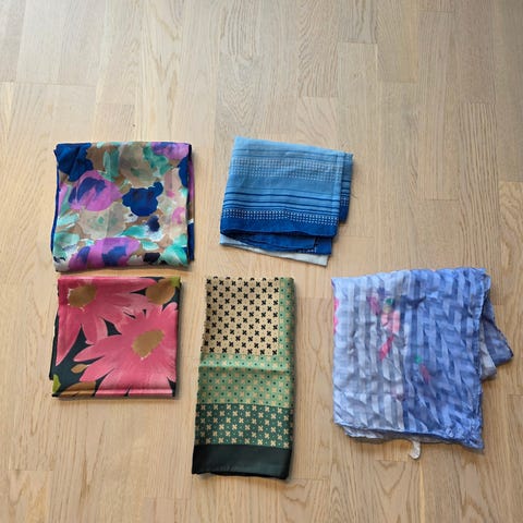 Nydelige vintage silkesjal frå Tyskland, og eit kasjmir-sjal av norsk design.